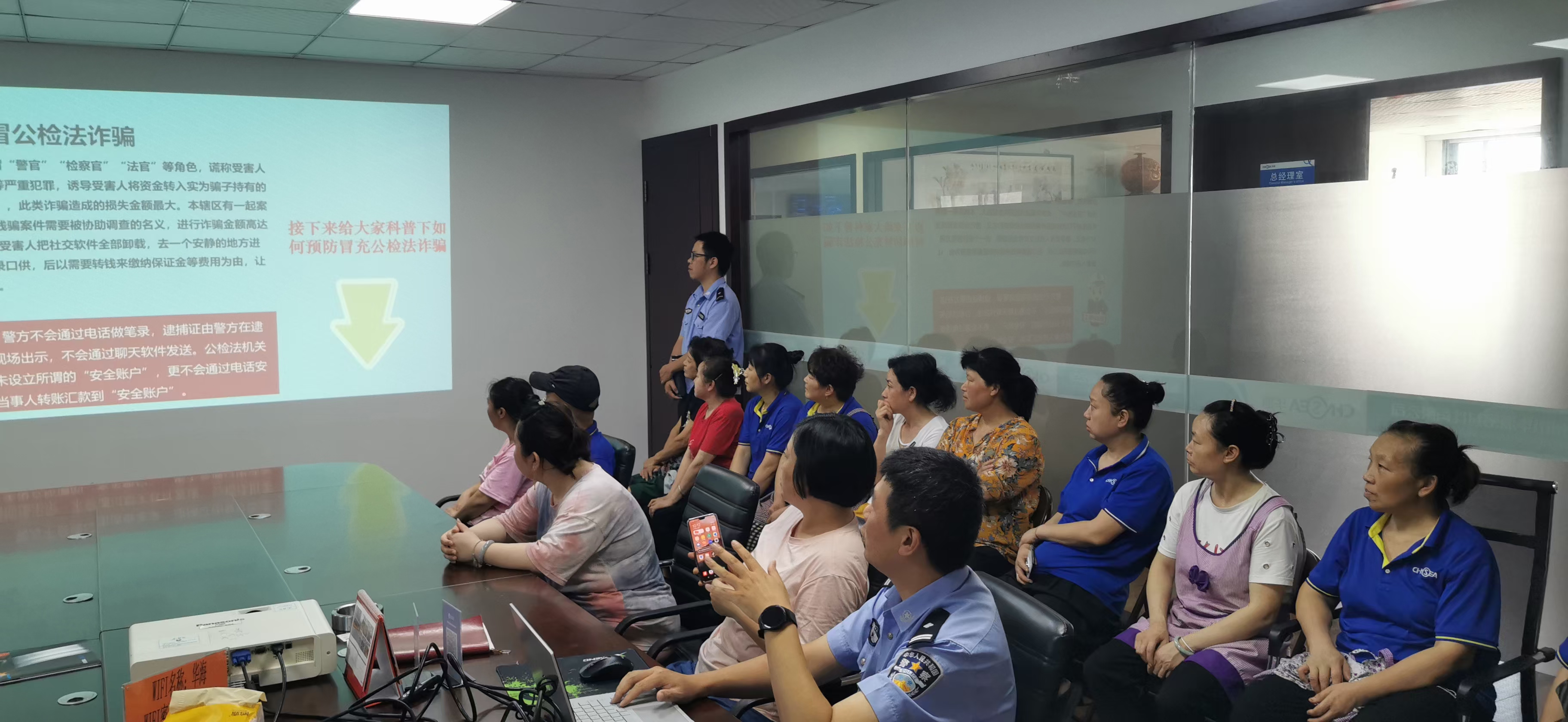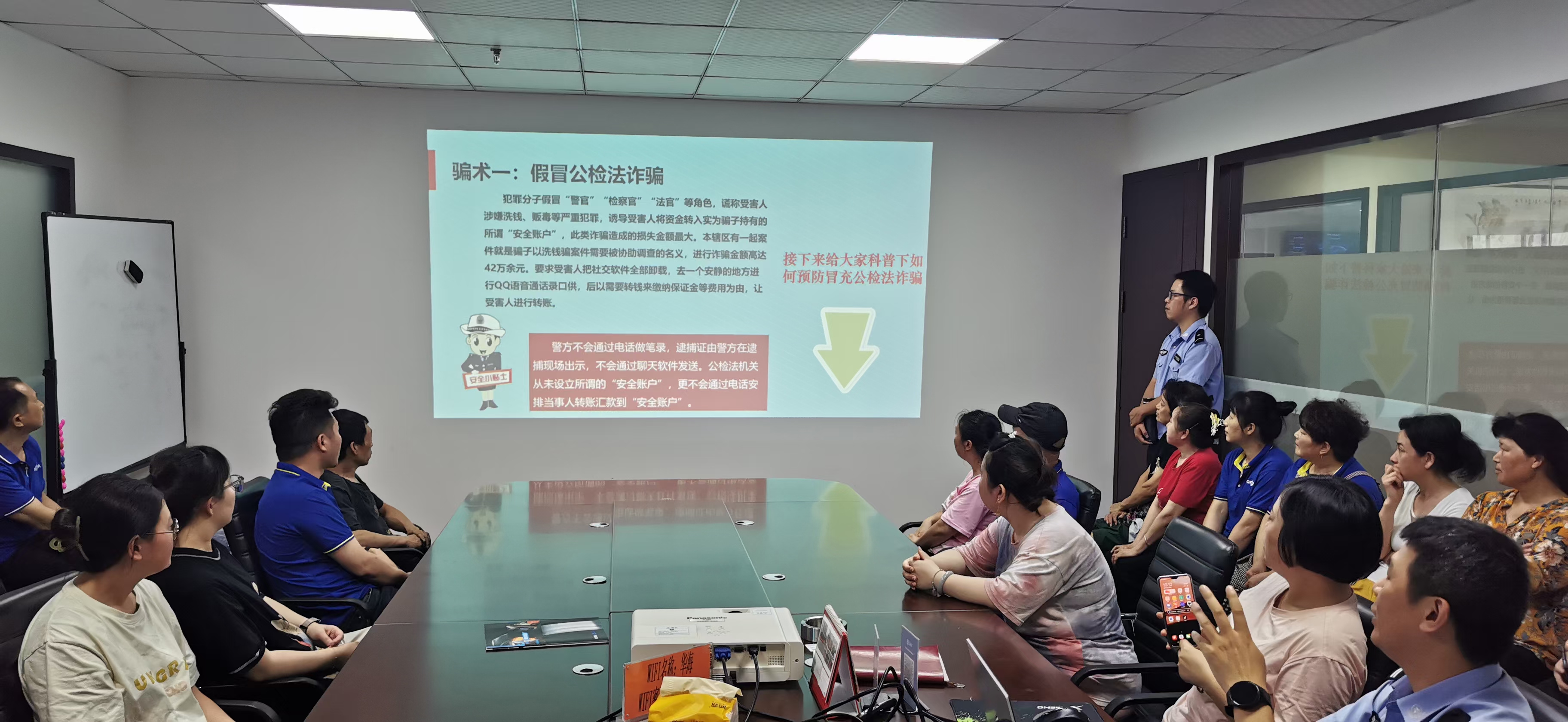 警官為大家詳細講述介紹了各式各樣的詐騙方式,教會我們如何正確辨別騙子的詐騙手段,保護好公司及個人自身的利益,全體人員受益匪淺,在此對永興派出所警官的細心講解表示感謝!
